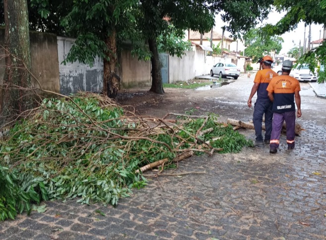 Equipes da Defesa Civil continuaram atuando, durante a noite, em diversos pontos da cidade para a remoção das árvores.