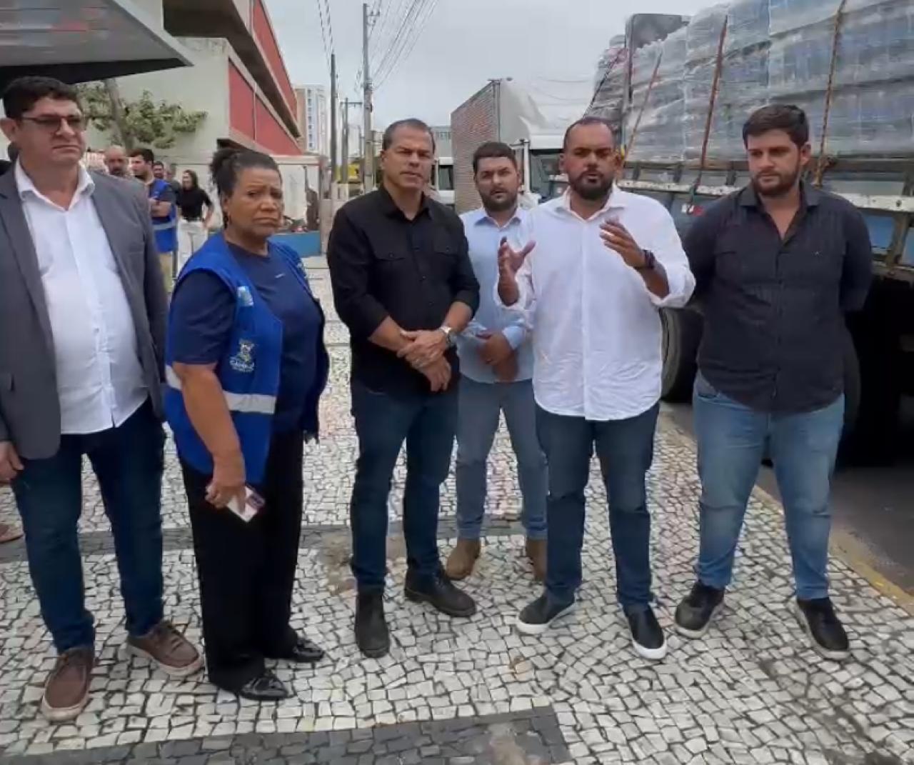 O presidente da Câmara de Campos, Marquinho Bacellar, esteve na Prefeitura de Campos na tarde desta terça-feira (26), acompanhado dos vereadores Helinho Nahim, Dandinho de Rio Preto e Marcione da Farmácia, fazendo a entrega de 5 caminhões carregados com doações para as vítimas da tragédia de Santo Eduardo.