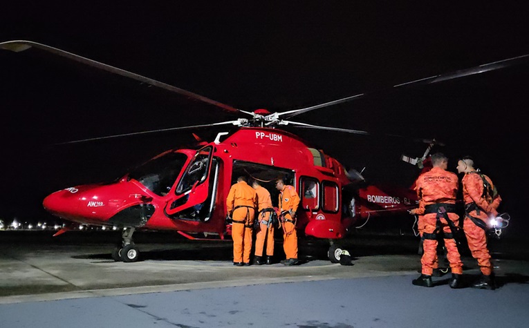 A primeira equipe de pronta resposta do CBMERJ chegou no Sul a bordo do helicóptero AW169, bimotor que comporta até 10 tripulantes, capaz de operar por instrumentos, inclusive no período noturno. A aeronave está atuando nas regiões mais afetadas do Estado, no socorro a pessoas que ficaram ilhadas por enchentes ou feridas por escorregamentos de terra.