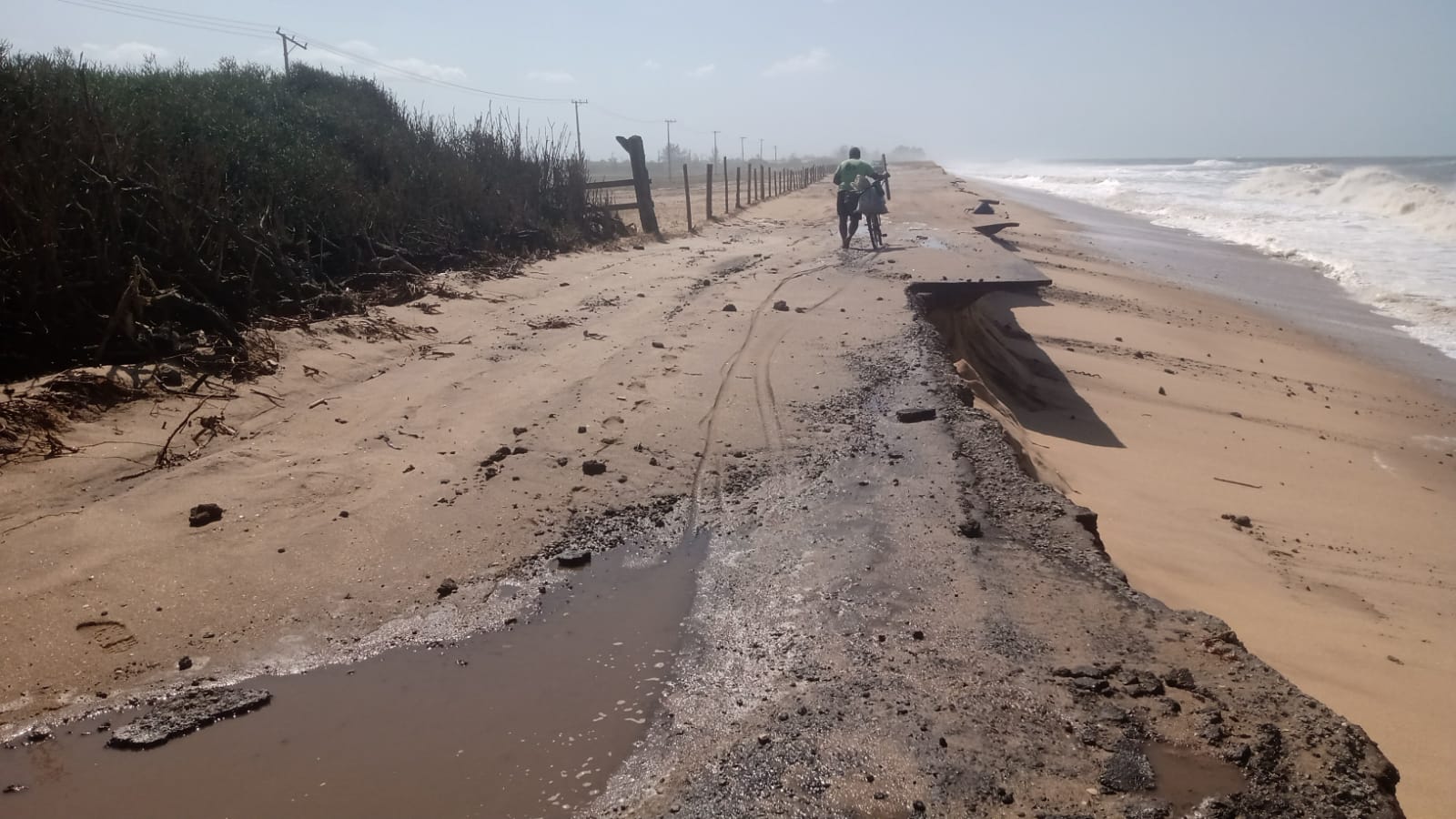 Ele disse que, em alguns pontos, as ondas atingiram quatro metros. “Essa faixa litorânea já é constantemente atingida por ondas e ventos que causam, em conjunto, o fenômeno da erosão costeira. Temos um agente da Defesa Civil que faz o monitoramento daquela área de forma permanente”.