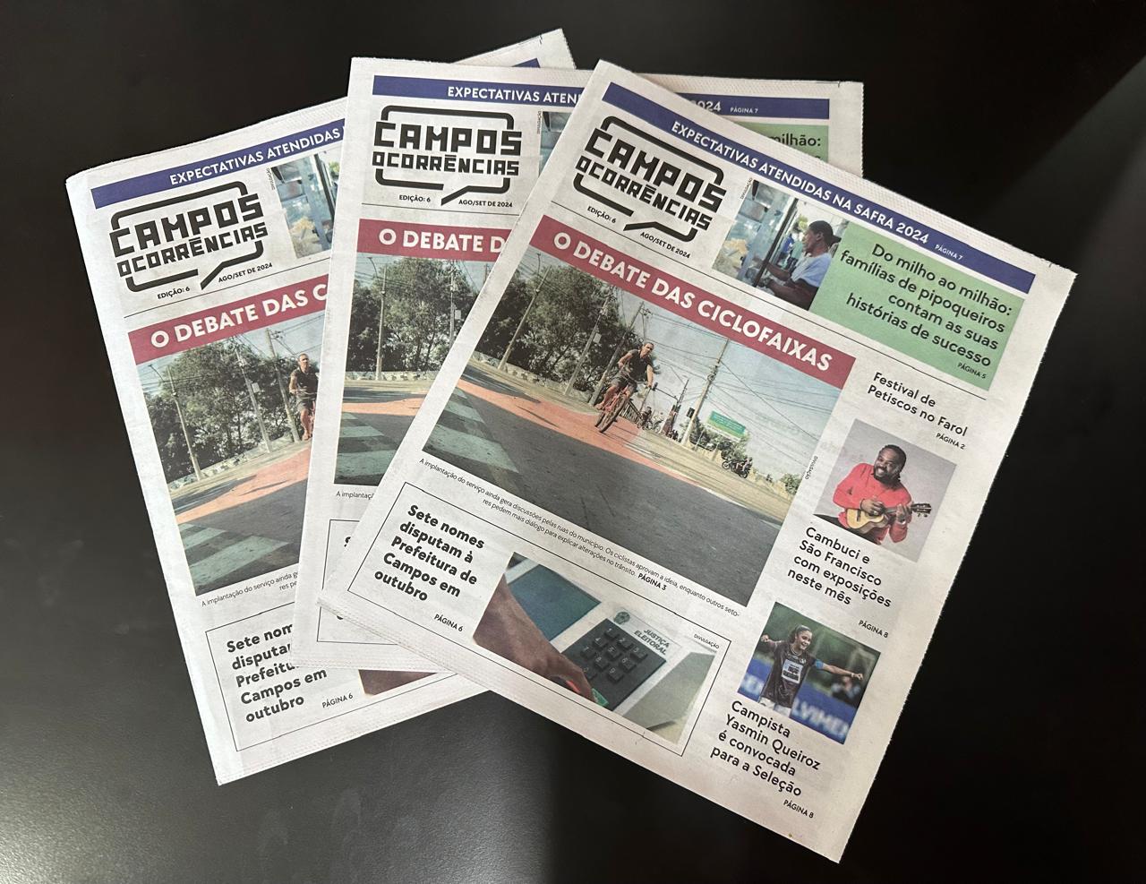 A 6ª edição do jornal impresso do Campos Ocorrências já está disponível em diversas bancas e pontos espalhados pela cidade. Desta vez, o destaque vai para a polêmica das ciclofaixas em Campos. Confira a matéria e fique por dentro de todos os detalhes.