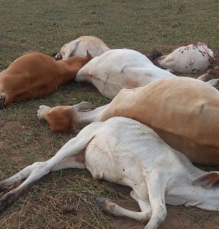 Durante a madrugada desta terça-feira (03), um raio atingiu uma propriedade na localidade de Volta Redonda, em São Francisco de Itabapoana, causando a morte de cerca de 12 animais, entre vacas e bezerros. A descarga elétrica, que ocorreu próximo a um campo de futebol, assustou os moradores da região.